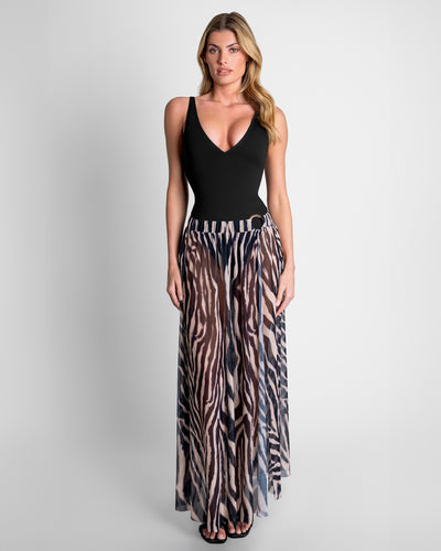 From beach to street. Adjustable ruched skirt with triangle ring details.