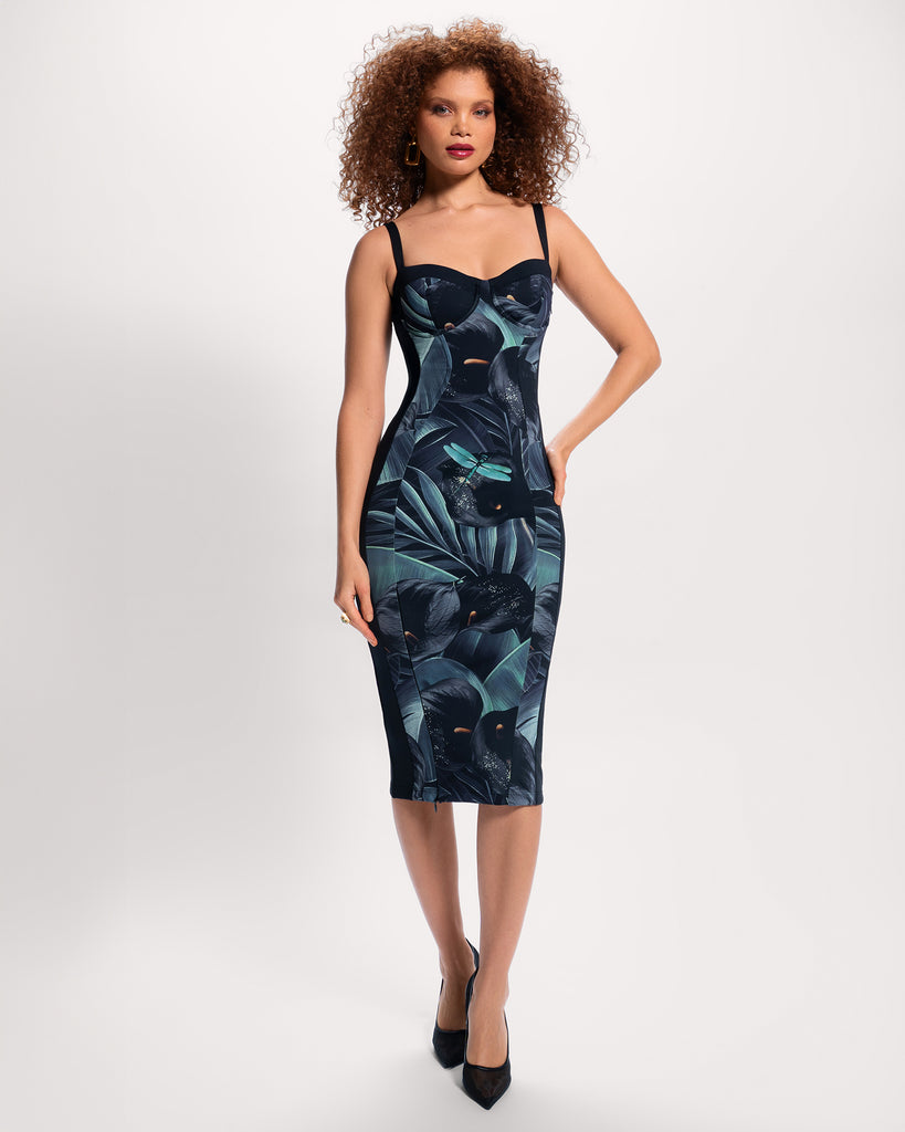 Seamed Lushy Midi Dress - Contour Black/Rose/White