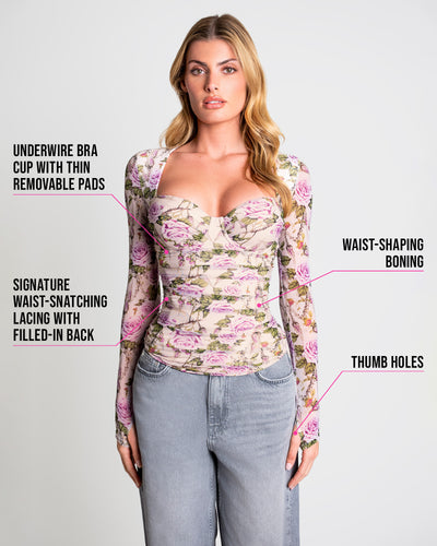 Full coverage bottom with lightweight boning at sides and targeted shaping panels.