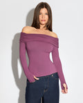 Shapey Off Shoulder Long Sleeve Top - Grape